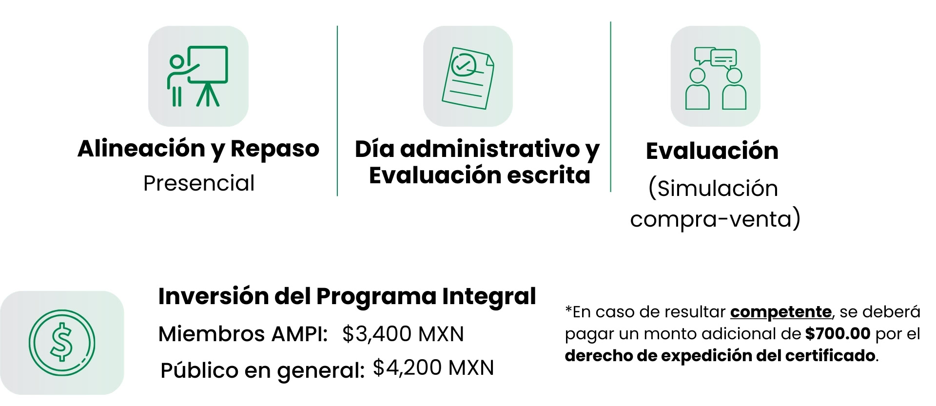 3. Evaluación: Examen oral, basado en la simulación de una compraventa, donde se evalúa que el aspirante posea los conocimientos, habilidades y actitudes necesarias para realizar correctamente la operación.